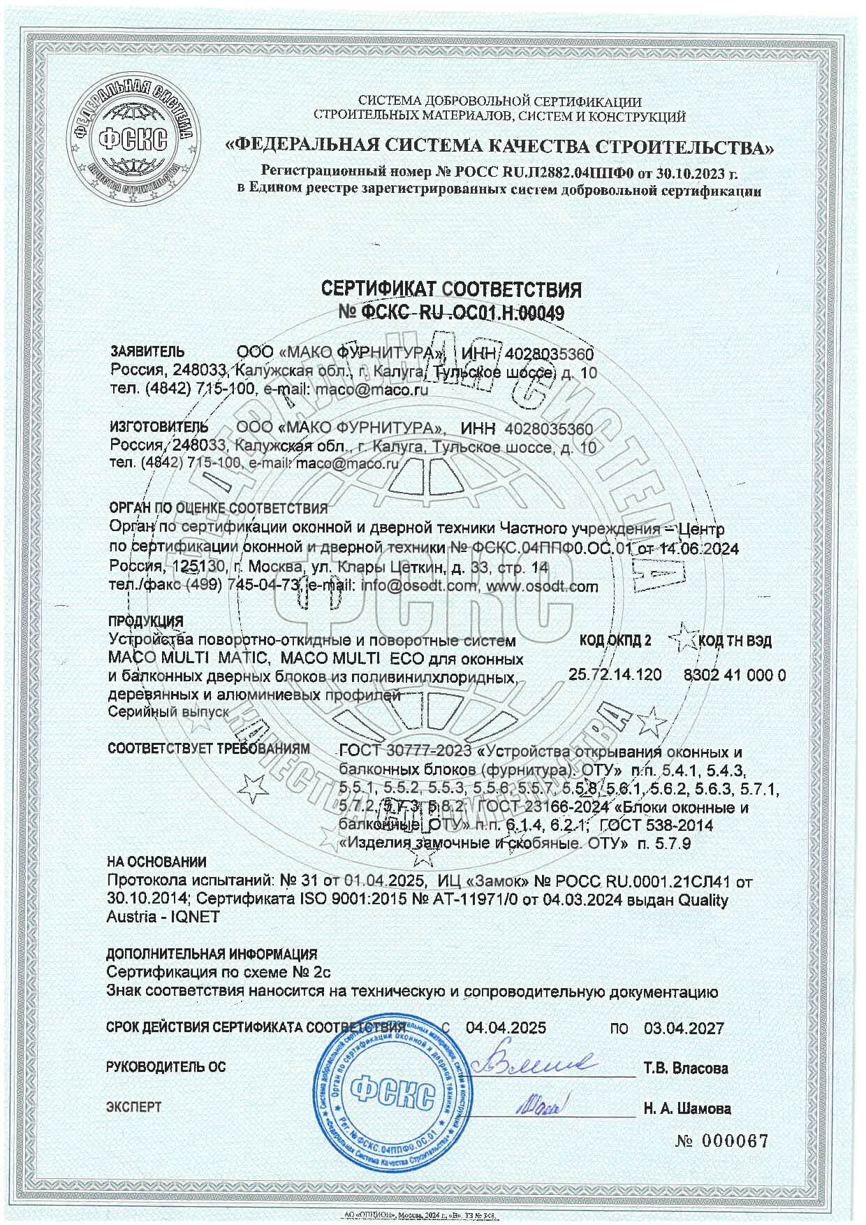 Продукция прошла процедуру сертификации и получила соответствующие документы
